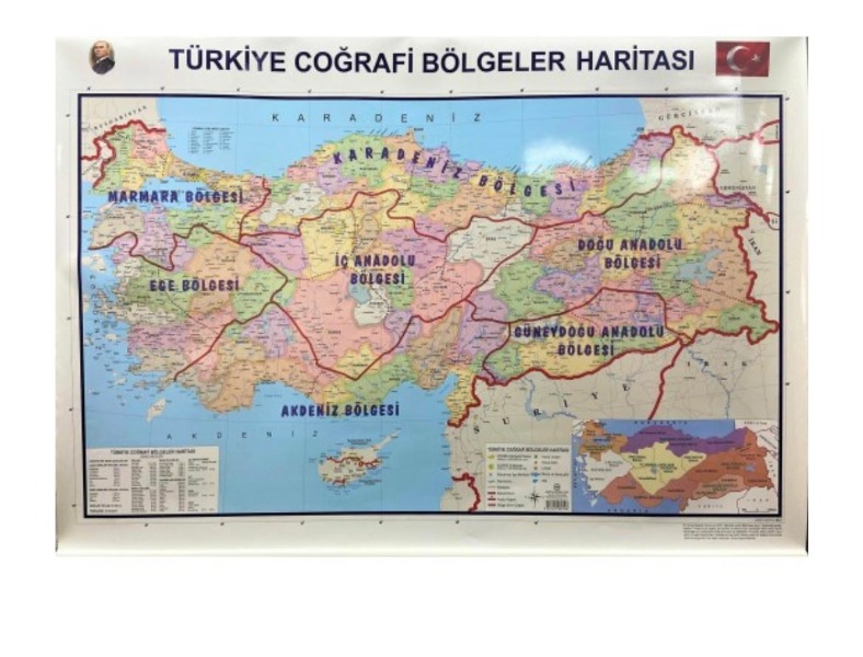 TÜRKİYE ÇOĞRAFİ BÖLGELER HARİTASI 70X100 CM