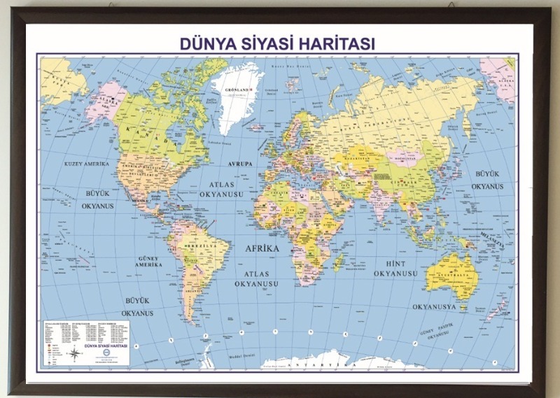 DÜNYA SİYASİ HARİTASI 70X100 MDF ÇERÇEVELİ